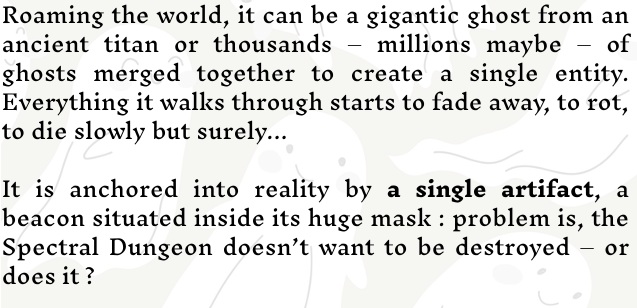 A dungeon which is also a ghost. Or the opposite ? Also, seven spectral-themed magic objects.